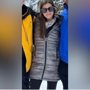 Andrew Marc Down Filled Lightweight Hooded Puffer Jacket Packable Silver Size XS