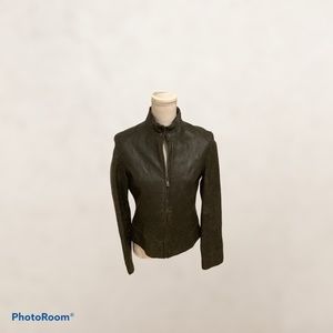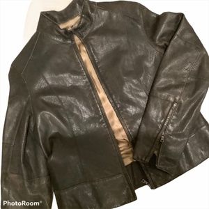 Andrew Marc Super cute distressed brown leather jacket. Zippers on sleeve.