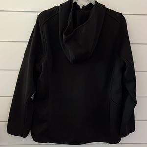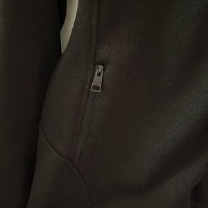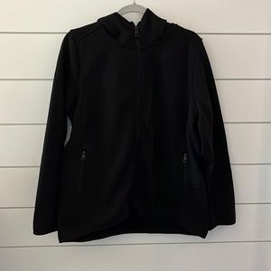 Preowned in great condition. Material has a ribbing look to it. Has zipper pockets. Measures laying flat 23 inches pit to pit; 25 inches length in front with back slightly longer at 27.