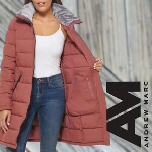 Andrew Marc | Hooded Long Stretch Parka | Terra Rose | NWT