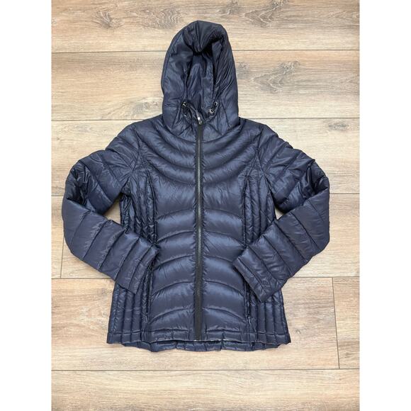 Andrew Marc Jacket Womens Small Blue Premium Down Quilted Puffer Packable Hooded