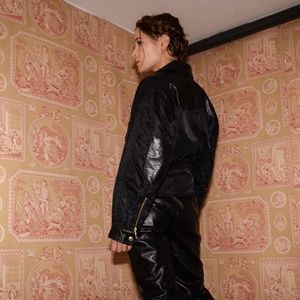 Vintage 80s dead stock Andrew Marc Leather Jacket with heavy duty brass zippers. In perfect condition, shoulders and elbows are black leather, body and arms are black Kevlar. Model is 5’2 for reference