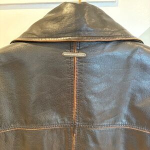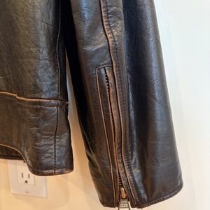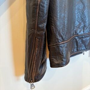 Andrew Marc Mens Leather Jacket, insulated and in good shape. All zippers work smoothly no rips or tears. Zippered chest pockets, hand pockets and cuffs. Mens Medium size, quilted lining for warmth.