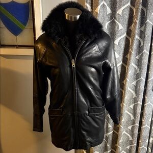 Andrew Marc Leather Jacket With Removable Fur Vest Lining- 2 Jackets in 1