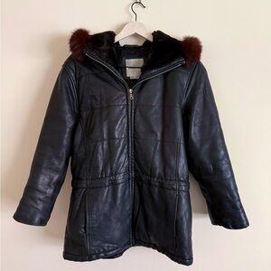 Andrew Marc Leather Jacket with Fur Trim and Hood - Womens Size S