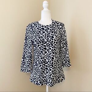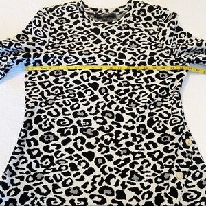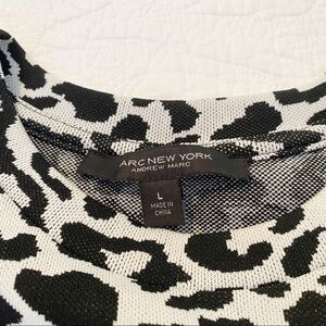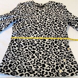 Animal print knit top side decorative gold tone button detail dress up or down great with black pants skirts faux real leather