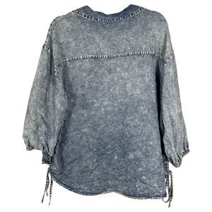 Andrew Marc Marc New York Chambray Acid Wash Button Front Oversized Flowy Shirt Size Small