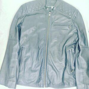 Excellent used condition dark blue gray leather jacket. Very nice. Large men's