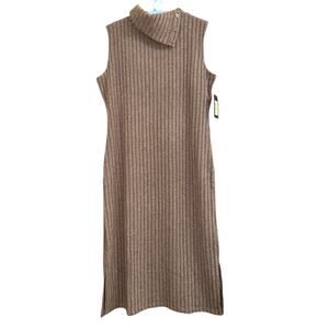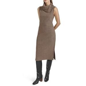 Andrew Marc Mocha Ribbed Sleeveless Funnel Neck Midi Dress M NEW