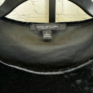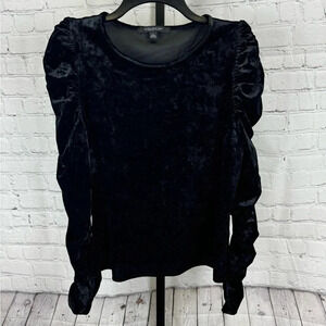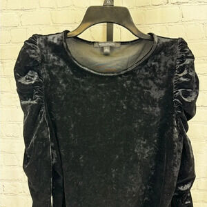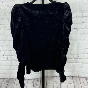 Andrew Marc New York Black Velvet Feel Ruched Sleeves Top Size Large