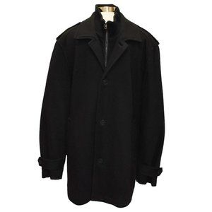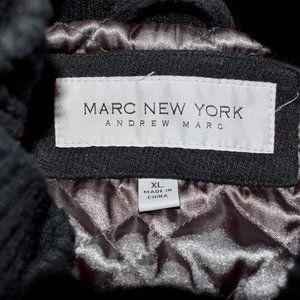 Andrew Marc New York Black Wool Blend Zip & Button Front Ribbed Knit Coat