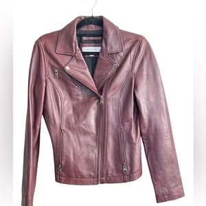 Andrew Marc New York Burgundy Leather Moto Jacket Sz M