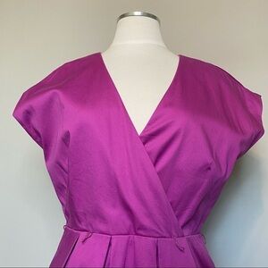 Andrew Marc New York Fuchsia V-neck Cap Sleeve Pleated Dress, size 4