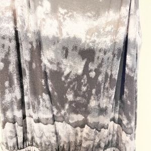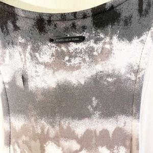 Andrew Marc New York High Low Tank Dress. Empire waist. Scoop neck. Black, white, gray tie dye. Name plate on the back. Like new condition.