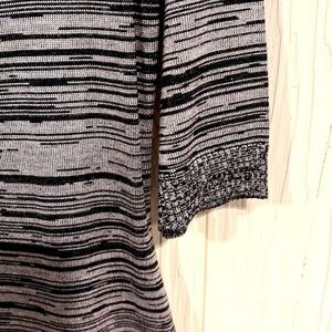 Andrew Marc New York knit dress with a drop waist and pleated bottom. Scoop neck.