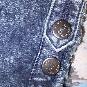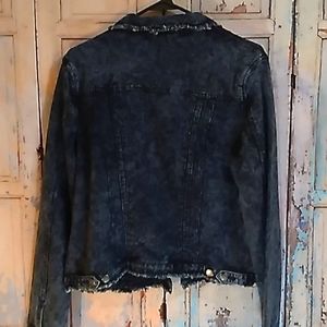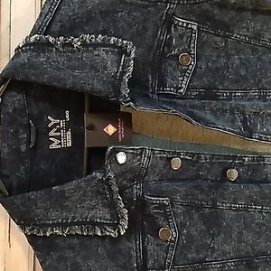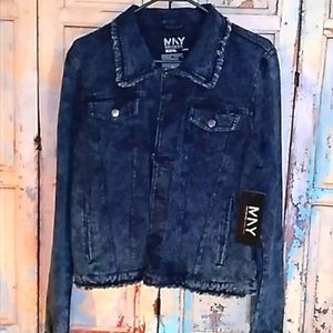 •Andrew Marc New York Performance Bomber Jean Denim jacket button Closure Front Pockets dark Blue Wash, fringe detail all over, mint condition excellent quality no signs of wear use or damage, 4 front functional pockets, dark bluewash faded, soft lining, soft fabric,