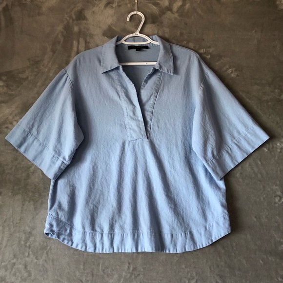Andrew Marc New York Top Size M Collar V-Neck Linen Blend Round Hem Wide Sleeves