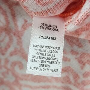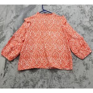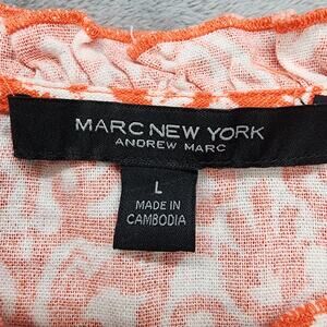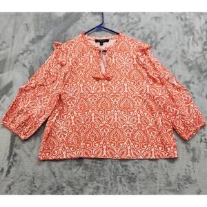 Andrew Marc New York Top Womens L Orange Linen Ruffle Trim Damask Stamp Print