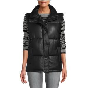 Andrew Marc New York Women’s Black Faux Leather Puffer Gilet Vest New