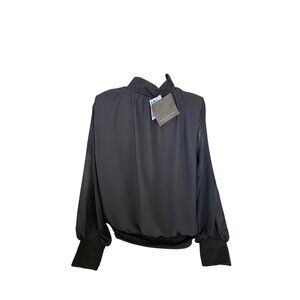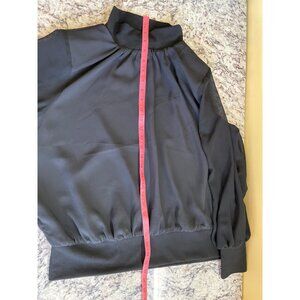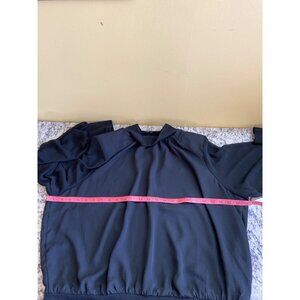 Andrew Marc New YorkWomens Blouse 1X Black Long Sleeve Sheer Pleated Corpcore