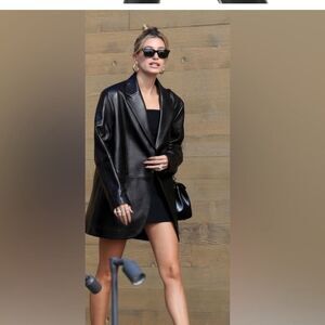 Andrew Marc One Button Fitted Vegan Leather Black Classic Blazer Jacket Size L