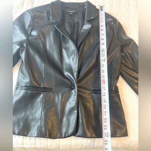 Andrew Marc One Button Fitted Vegan Leather Black Classic Blazer Jacket Size L