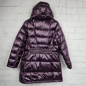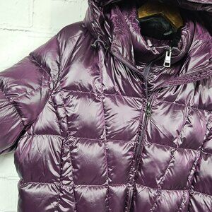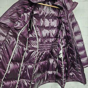 Andrew Marc Purple Packable Down Hooded Puffer Jacket XL Long Duster Coat