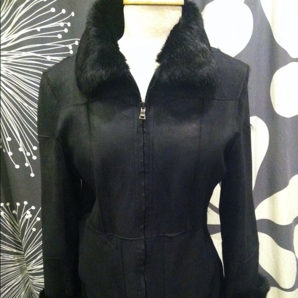 Reversible! Andrew Marc (luxury) Black rabbit fur with Shearling and exposed seams. Front pockets on shearling side, and front zipper. Size M fits size 8-10 women’s. Barely ever worn. Live in smoke-free 🚭 home in Florida. ☀️ This jacket was originally $2,700.