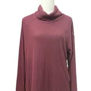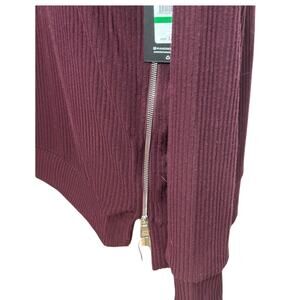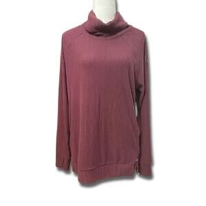 Andrew Marc Sport Turtle Neck Top Side Zipper Relaxed Fit Ribbed Burgundy L NWT