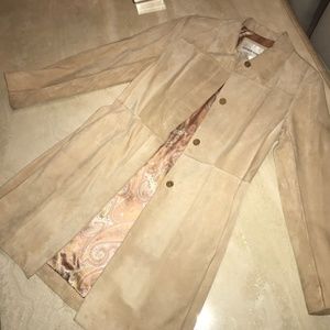 Stylish soft suede coat in a beautiful cream/tan. Gently used in very good condition