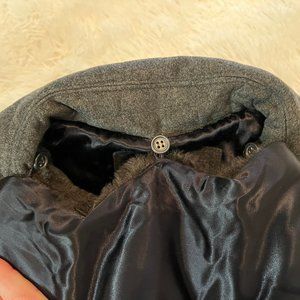 Stay ultra warm is this Andrew Marc Thermolite Plus jacket that is charcoal gray with a padded outside box pattern, 4 button closure, two front covered snap pockets, complimentary removable faux fur collar, and side hip snaps for that perfect fit - leave ‘em open or closed!