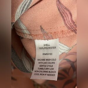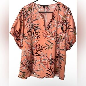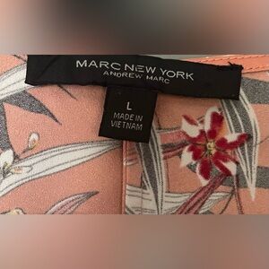 Andrew Marc Tops Floral Boxy Satin V Neck Blouse Workwear Color: pink/Orange L