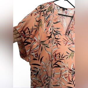 Andrew Marc Tops | Andrew Marc Womens L Coral Floral Boxy Satin V Neck Blouse Workwear | Color: pink/Orange