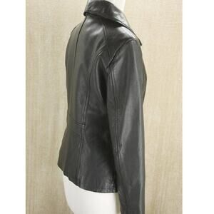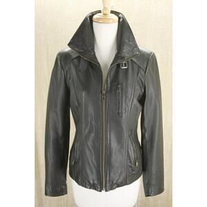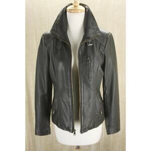 Authentic new Andrew Marc 'Trooper' Black leather Jacket in size Extra Small. A rugged leather jacket that will keep you snug and chic. The belted funnel neck can be zipped to the top for warmth, and the vertical zippers on the Trooper accentuate the slimming seams. This jacket retails for $495.