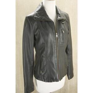 Andrew Marc Trooper Black Leather Biker Bomber Jacket Size XS New $495