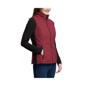 Andrew Marc Vest Women's Size L Red Burgundy Puffer Quilted Zipper Pockets