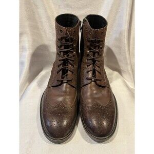 Andrew Marc Wingtip Brown Leather Lace Up Ankle Boots w/ Zipper Men 9.5 C99-112
