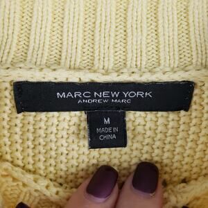 Andrew Marc Women's M Balloon Sleeve Loose Knit Sweater Yellow Coastal Grandma