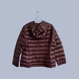 Andrew Marc Women’s XXL Burgundy Down Puffer Jacket Gold Zippers Packable NWT