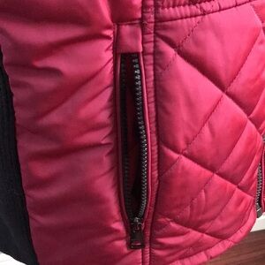 Andrew Marc burgundy and black quilted puffer zip up vest