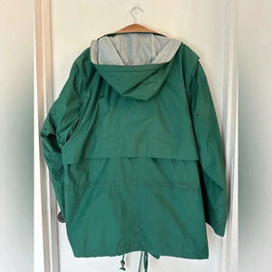 Andrew Marc hunter green hooded wind jacket leather collar men’s large