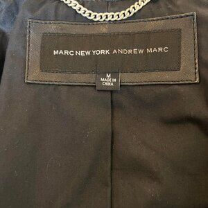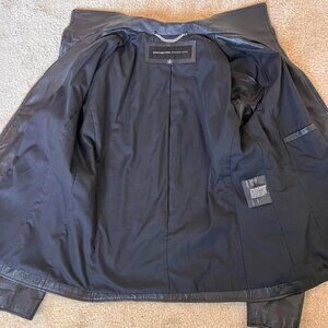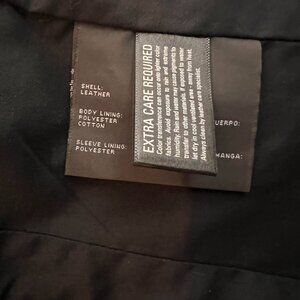 Andrew Marc zip up blazer style genuine leather jacket. Very 90s vibes and looks great with a mini dress or mini skirt and boots!