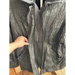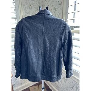 Andrew Marc leather jacket Leopard Embossed Size Large Bomber Full Zip Motto