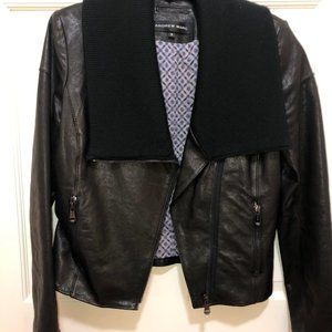 Beautiful Andrew Marc leather jacket with wool blend collar