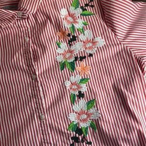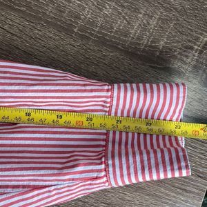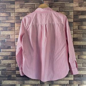 EUC Andrew Marc Button Down Shirt Red White Striped Embroidered Long Sleeve L