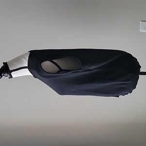 Pre-owned, in excellent condition, no holes, no stains, no snags. Crewneck, sleeveless, color is black. Ribbed at the neck and hem.