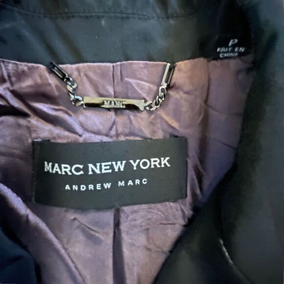 Andrew Marc ~Marc New York ~Black coat with plum lining ~size Small ~Polyester
