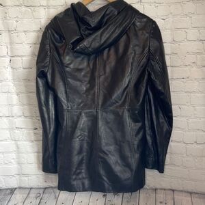 Andrew Marc Men’s Black Leather Hooded Zip up Jacket size medium