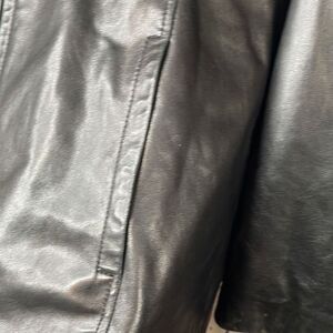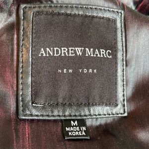 Andrew Marc Men’s Black Leather Jacket, Zip up, Hooded, 2 Front pockets. The exterior is in great condition however the interior is RIPPING LOOK at the pics