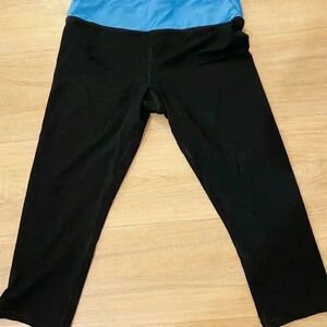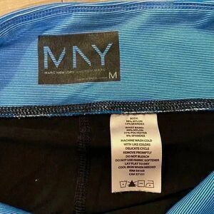 Marc New York Andrew Marc workout set. Fabulous blue with racer back and built in bra. Black crop pants with same blue topping pant. Top is S and Pants are a M. Pants run small. Great shape.